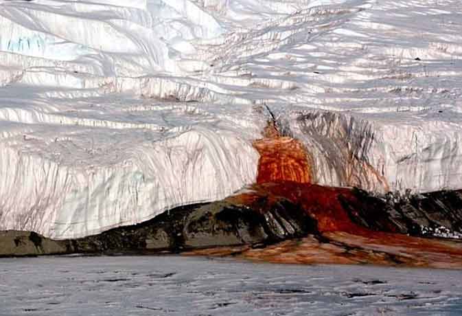 बर्फ से लदा अंटार्कटिका द्वीप काफी रहस्यमयी है। यहां का तापमान हमेशा माइनस में रहता है। ऐसे में किसी के आने की हिम्मत नहीं होती। पहली बार साल 1911 में ऑस्ट्रेलिया के जियोलॉजिस्ट ग्रिफिथ टेलर ने यहां आने की हिम्मत की और उन्होंने वो चीज देखी जिसकी कोई कल्पना भी नहीं कर सकता। आमतौर पर ग्लेशियर से पानी या झरने बहते हैं लेकिन यहां तो खूनी वॉटर फॉल बह रहा था। जिसे Blood Falls कहा जाता है। उन्हें पहले लगा कि ये लाल रंग दरअसल माइक्रोस्कॉपिक लाल शैवल की वजह से है।